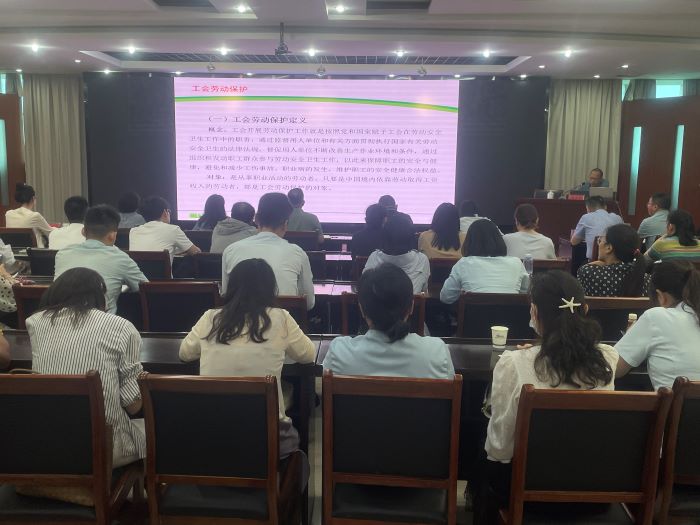 會上,許小兵老師采用PPT演示,圍繞工會勞動保護定義、安全生產(chǎn)和勞動保護的異同、工會勞動保護的職責(zé)和內(nèi)容、工會勞動保護工作主要活動載體等方面進行了系統(tǒng)、深入、精彩的講解,并結(jié)合實際案例進行了分析,使員工們對勞動保護有了更加全面和深入的認(rèn)識。