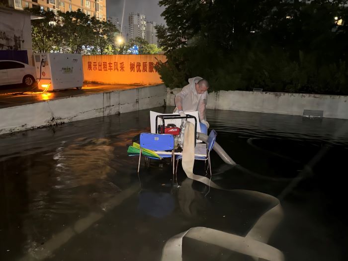 夜幕下,事業(yè)部的工作人員手持手電筒,穿梭在場(chǎng)區(qū)的每一個(gè)角落。他們有的忙著架設(shè)抽水機(jī),放置抽水管道,確保雨水能夠順暢排出;有的則仔細(xì)檢查圍墻、屋頂?shù)汝P(guān)鍵部位,及時(shí)發(fā)現(xiàn)并處理可能存在的問題;還有的工作人員則忙著搬運(yùn)沙袋,加固低洼地段的防水屏障。盡管雨勢(shì)漸大,但大家的心卻更加凝聚,彼此間的協(xié)作更加默契,共同守護(hù)著這片屬于他們的“戰(zhàn)場(chǎng)”。
